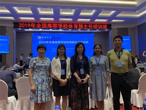 (公共体育教学部供稿)为深入贯彻党的十九大和全国教育工作会议精神,切实落实好《国务院办公厅关于强化学校体育促进学生身心健康全面发展的意见》(国办发[2016]27号文)精神,进一步深化普通高等学校体育综合改革,全面推进高校公共体育教育教学工作在新的历史起点上科学健康的发展,6月28日—7月1日,全国高等学校体育教学指导委员会在郑州大学主办了体育部主任培训班,我校公共体育教学部肖亚玲副主任参加学习。