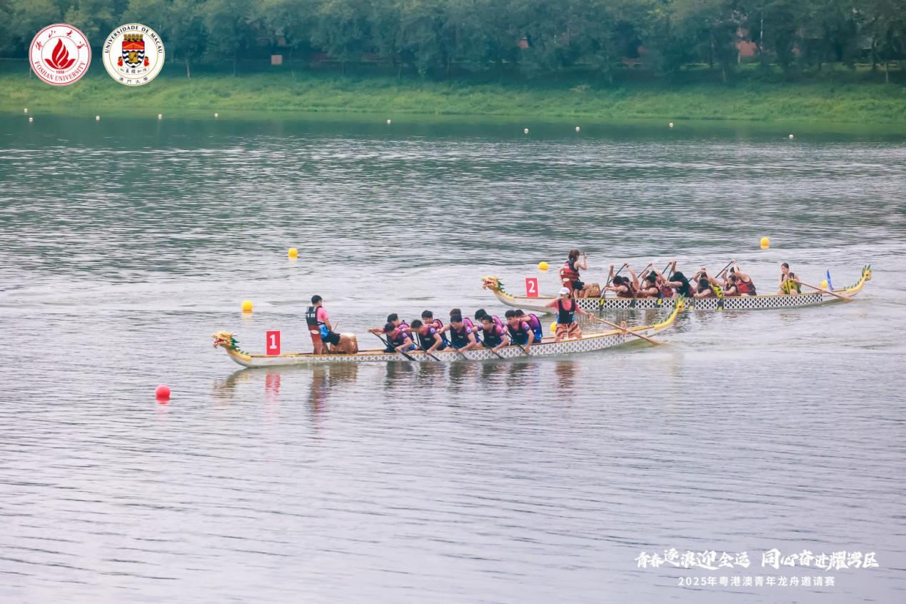 本次赛事由佛山市委台港澳办,广东省龙舟协会,粤港澳大湾区体育教育与发展联盟多方合办,汇聚了包括香港地区香港浸会大学,澳门地区澳门大学、澳门理工大学、澳门城市大学,澳门镜湖护理学院,广东地区佛山大学、华南师范大学、南方医科大学、广州体育学院、广州航海学院、北京科技大学顺德创新学院、广东轻工职业技术大学,顺德职业技术大学在内的多支传统强队。面对强劲的对手,广航院龙舟队毫不畏惧,将压力化为动力。在200米和500米预赛中,队员们动作整齐划一,桨频稳健,分别以小组第一和第八的身份顺利晋级决赛。